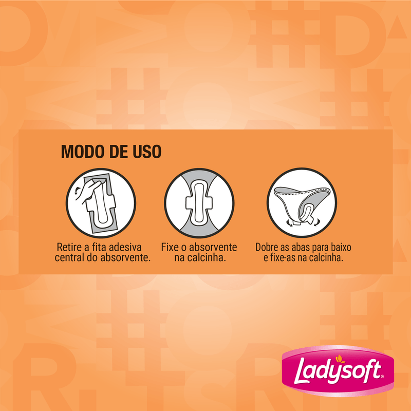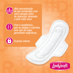O Absorvente Ladysoft Cobertura Seca com Abas proporciona rápida absorção do fluxo intenso com alta concentração de gel combinada com uma camada extrta de absorção deixando a pele mais seca, dando mais segurança e conforto para você, além de ser hipoalergênico e evitar desconfortos.