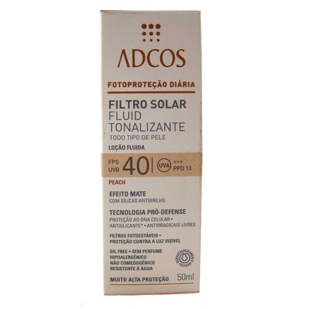 Protetor Solar ADCOS Tonalizante Fluid Com Cor FPS40 50mL - oferece alta proteção solar contra os raios UVA, UVB (FPS 40) e a luz visível, enquanto proporciona cobertura natural das imperfeições da pele em tonalidades que se adaptam às diversas peles brasileiras - Possui efeito mate prolongado, proporcionando o controle de oleosidade da pele - Com Vitamina E, que proporciona ação antioxidante e antienvelhecimento; a Alantoína, que acalma e repara a pele; e o Alistin, que atua na proteção do DNA celular, prevenindo e reparando a pele do processo de glicação (ação antiglicante) - Oil-free, sem fragrância, resistente à água, sua textura é fluida, fácil de espalhar, tem rápida absorção, é dermatologicamente testado e hipoalergênico. Indicação Indicado todos os tipos de pele, inclusive a pele oleosa. Benefícios - Protetor solar com cor de cobertura média e com disfarce de imperfeições, enquanto protege a pele. Possui 6 tonalidades, além da versão incolor. - Fórmula com sílicas antibrilho, que proporciona efeito mate e controla a oleosidade excessiva da pele. - Não comedogênico, sem perfume e resistente à água. - Filtro solar com textura fluida, leve e ultrafina com secagem rápida e toque seco. - Protege a pele da luz visível. - Indicado para pele sensível a queimadura solar. - Dermatologicamente testado e hipoalergênico. Princípios Ativos Vitamina E: antioxidante biológico que protege os constituintes celulares contra a oxidação e inibe a formação de peróxidos lipídicos, sendo considerado essencial para a estabilização das membranas biológicas. Decarboxy Carnosine HCI (ALISTIN®): potente antioxidante que atua na proteção do DNA, além de atuar no processo preventivo e reparador da glicação. Alantoína: ativo com reconhecidas propriedades dermatológicas anti-idade, potente renovador celular. Favorece a proliferação celular acelerando a regeneração da pele agredida, proporcionando uma rápida epitelização (ação reparadora), e ainda melhora a umectação da pele. Modo de uso Agite antes de usar e aplique abundantemente uma camada do Filtro Solar Tonalizante FPS 40 Fluid em todo o rosto, antes da exposição ao sol. Para manter a efetividade, reaplique o protetor solar sempre que necessário como após secar-se com a toalha, durante a exposição solar e após banhar-se. Processo Anvisa: 25351.374910/2010-91. É NECESSÁRIO A REAPLICAÇÃO DO PRODUTO PARA MANTER A SUA EFETIVIDADE; AJUDA A PREVENIR AS QUEIMADURAS SOLARES; PARA CRIANÇAS MENORES DE 6 (SEIS) MESES, CONSULTAR UM MÉDICO; ESTE PRODUTO NÃO OFERECE NENHUMA PROTEÇÃO CONTRA INSOLAÇÃO; EVITE EXPOSIÇÃO PROLONGADA DE CRIANÇAS AO SOL; APLIQUE ABUNDANTEMENTE ANTES DA EXPOSIÇÃO AO SOL; CONSULTE A ROTULAGEM QUANTO AO TEMPO DETERMINADO PELO FABRICANTE OU PERÍODO DE ESPERA (ANTES DA EXPOSIÇÃO); REAPLICAR SEMPRE, APÓS SUDORESE INTENSA, NADAR OU BANHAR-SE, SECAR-SE COM TOALHA E DURANTE A EXPOSIÇÃO AO SOL; CONSULTE A ROTULAGEM QUANTO AO TEMPO DETERMINADO PELO FABRICANTE PARA REAPLICAÇÃO; SE A QUANTIDADE APLICADA NÃO FOR ADEQUADA, O NÍVEL DE PROTEÇÃO SERÁ SIGNIFICATIVAMENTE REDUZIDO.