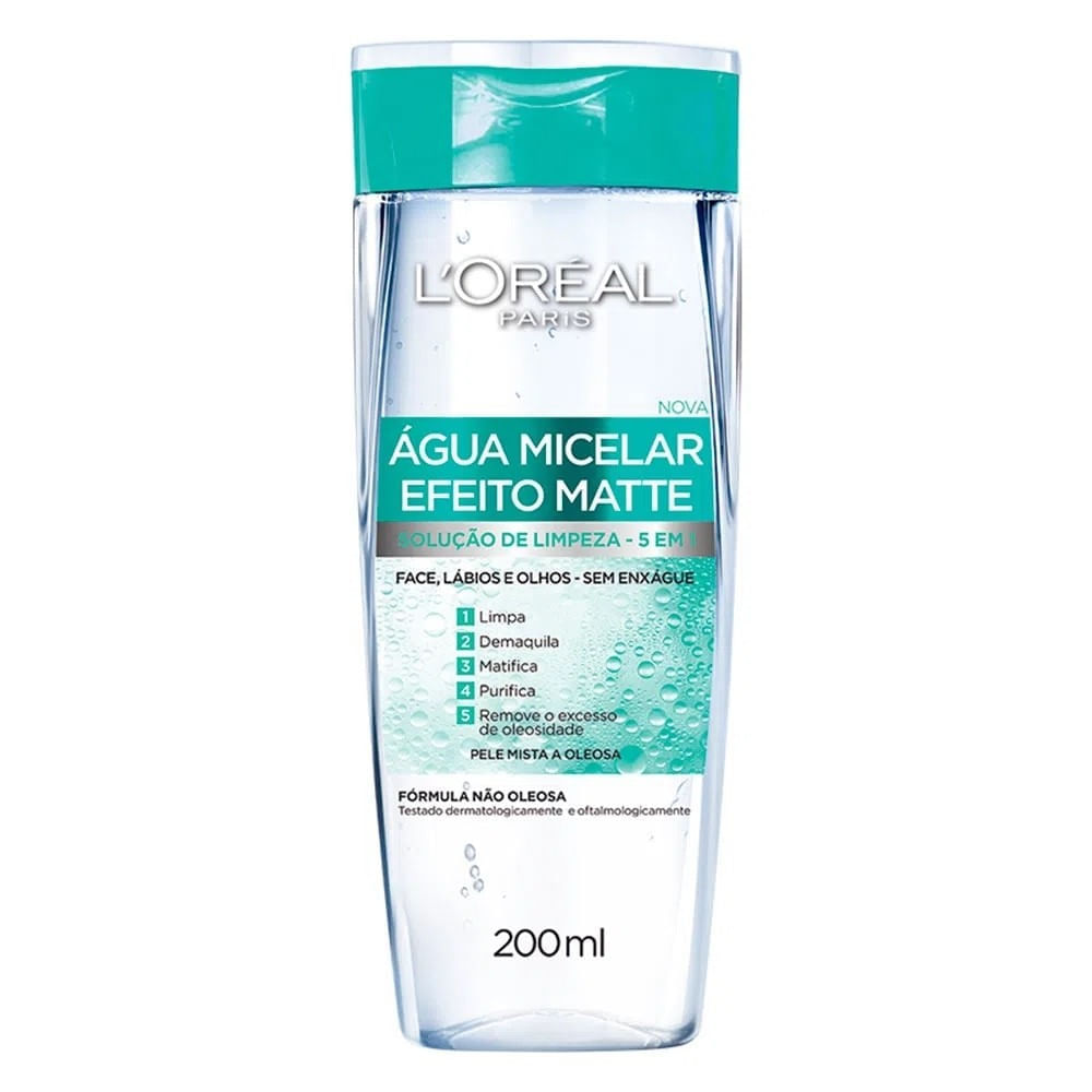 A Água Micelar da L’Oréal Paris Efeito Matte é um limpador facial com múltiplos benefícios eficazes para a sua pele: limpa, demaquila, matifica, purifica e remove o excesso de oleosidade do rosto. Sua fórmula é composta por partículas chamadas de micelas, que agem como ímãs captando e eliminando as impurezas e a maquiagem da face.
