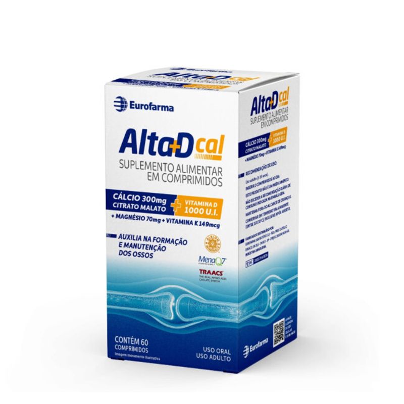 Detalhes do Produto: Desenvolvido com uma formulação cientificamente equilibrada, o Alta D Cal foi criado pela Eurofarma para fornecer um espectro completo de nutrientes vitais para a saúde óssea e muscular.