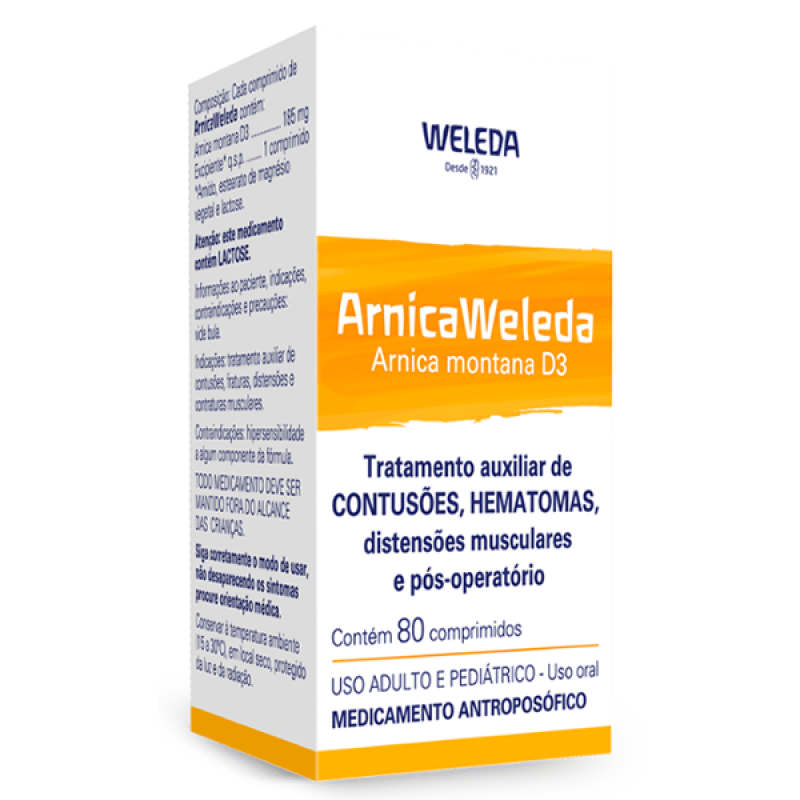 Arnica Weleda é um medicamento antroposófico indicado no tratamento auxiliar de contusões, fraturas, distensões, contraturas musculares, restrição aos movimentos, excessos musculares, no pós-operatório, na angina pectoris, infarto do miocárdio, apoplexia, concussão cerebral, esclerose múltipla, consequências imediatas e tardias – locais ou gerais – de traumatismos, gota e reumatismo, consequências posteriores de traumas psíquicos.