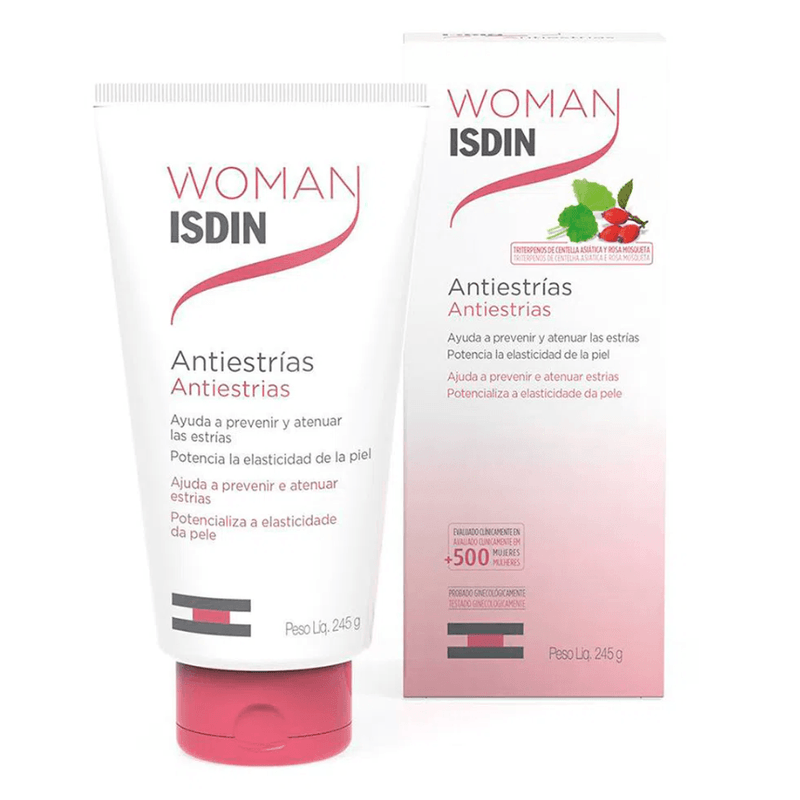 Woman Isdin Antiestrias é um creme que ajuda a combater e atenuar as estrias que surgem no corpo da mulher, seja na puberdade, na gravidez ou por alteração de peso.
