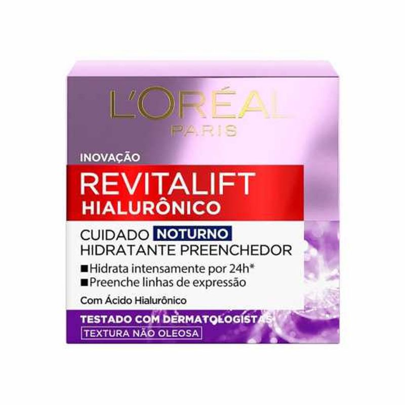 Revitalift Hialurônico Noturno é um creme facial de uso noturno enriquecido com ácido hialurônico, para combater os sinais de envelhecimento da pele.