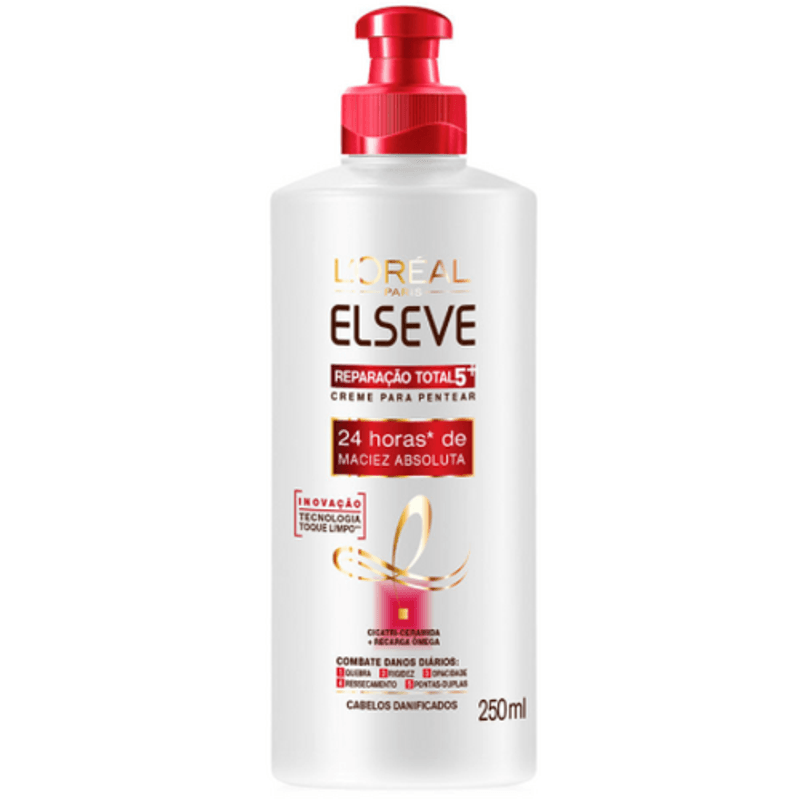 Com Cicatri-Ceramida na sua fórmula, o creme de pentear Reparação Total 5 age combatendo os danos externos ao cabelo desde os primeiros sinais. O creme de pentear Elseve Reparação Total 5 identifica e repara os danos fio a fio do cabelo sem pesar. Com textura cremosa.