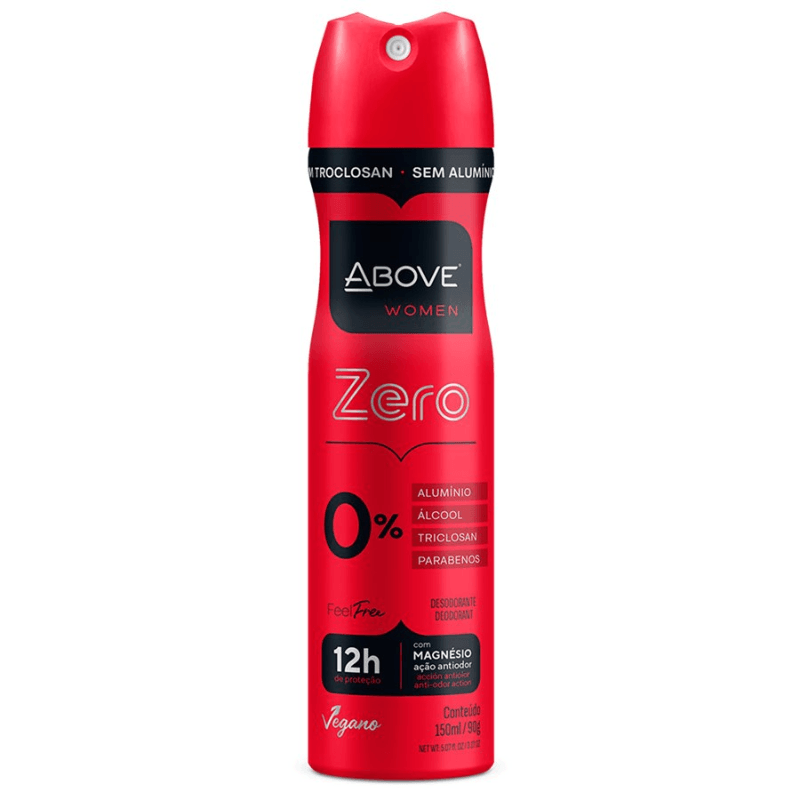 O que é: Sinta-se livre com o novo Antitranspirante Above Feel Free, com 0% de sais de alumínio e álcool etílico. Com uma tecnologia inovadora para controlar o mau odor das axilas, sua ação é promovida pelo Magnésio, garantindo 12h de proteção ao longo do dia sem bloquear a pele.Para que serve: Sua fórmula dermatologicamente testada e livre de Parabenos e Triclosan hidrata a pele através de um jato seco, proporcionando todo o conforto. O Above Feel Free é também considerado um produto vegano!Modo de usar: Agite bem a embalagem e aplique nas axilas a uma distância aproximada de 15 cm. Proteja os olhos durante a aplicação.