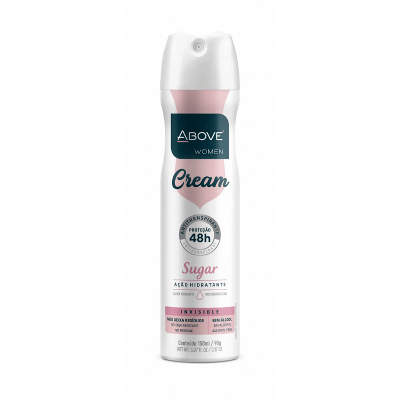 O Above Women Cream Sugar é um desodorante aerossol feminino formulado com Bio Elixir que, além de oferecer 48 horas de proteção contra suor e mau odor, também protege a sua roupa, evitando a formação de resíduos e manchas em diversos tipos de tecidos.