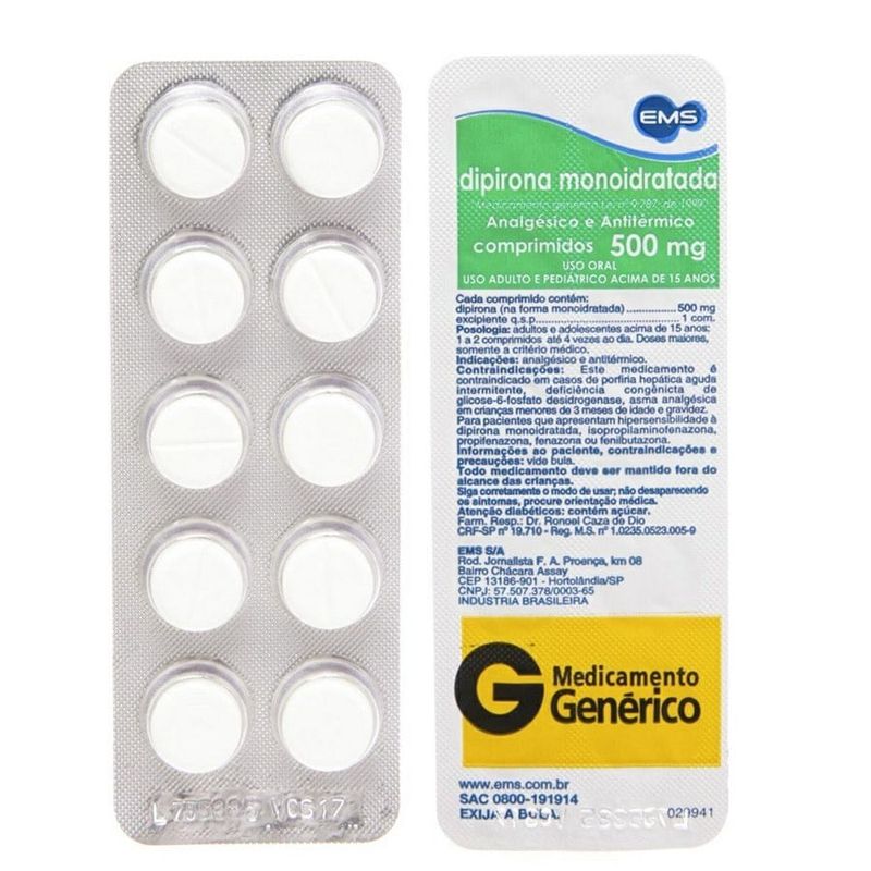 Dipirona 500mg Blíster com 10 Comprimidos