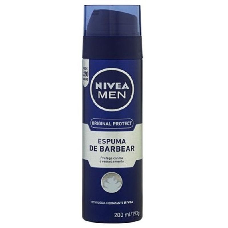 Nivea Men Espuma de Barbear Original Protect é ideal para homens com tendência para a pele seca e à irritação causada pelo barbear. Os ingredientes hidratantes ajudam a prevenir o ressecamento da pele. A sua fórmula proporciona o deslizar de lâmina mais eficaz e um barbear mais rente e confortável. Hidrate e proteja a sua pele com esta Espuma de Barbear e sinta sua pele mais macia. Benefícios Proporciona um barbear rente e confortável - Previne a irritação causada pelo barbear - Fórmula com Aloe Vera e Ativos Hidratantes - Amacia o pelo da barba para garantir um barbear ainda mais rente - Previne o ressecamento da pele Modo de Usar PREPARO Agite bem antes de usar. Mantenha a lata na posição vertical APLICAR Aplique generosamente sobre o rosto úmido e após o barbear, enxágue abundamente.