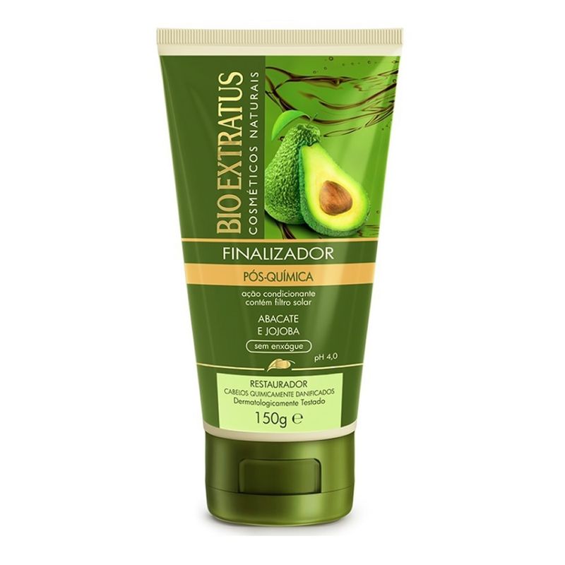 Forma um escudo hidroprotetor sobre a fibra capilar. Auxilia na reposição de água e de nutrientes, completando o tratamento restaurador. Possui termoproteção e filtro solar, podendo ser utilizado para escovar, ou para secar os fios naturalmente. Bio Extratus Pós Química Finalizador 150gr, ideal para todos os tipos de cabelo, principalmente cabelos tingidos, pois hidrata, nutre, mantém o brilho e maciez dos cabelos tingidos por mais tempo.