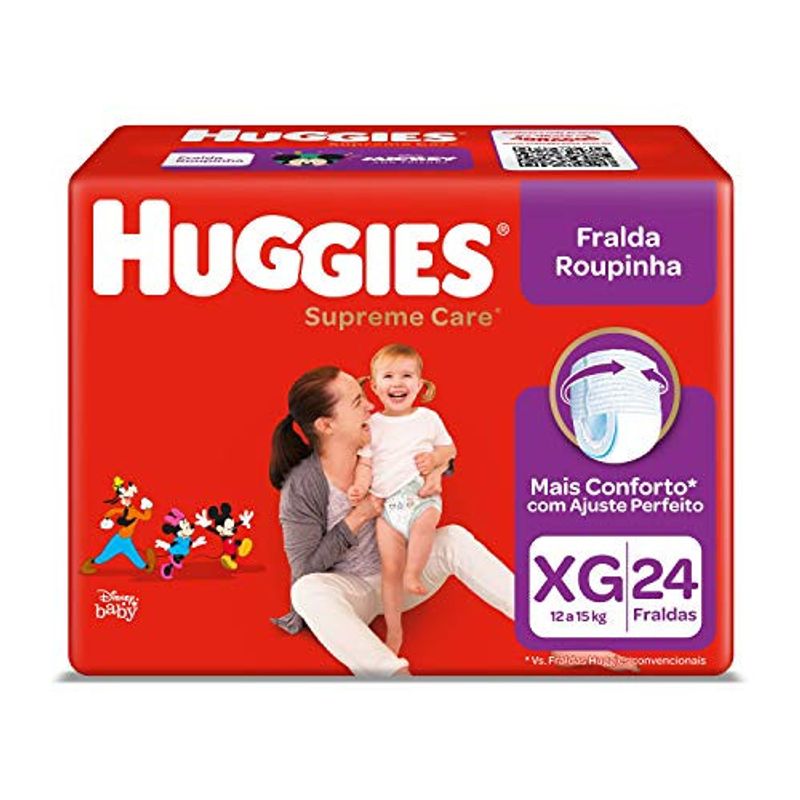 A Fralda Roupinha Huggies Supreme Care Disney Baby na apresentação tamanho XG, com um pacote contendo 24 unidades, é uma escolha prática e eficaz para garantir conforto, proteção e facilidade durante as trocas de fraldas do seu bebê.