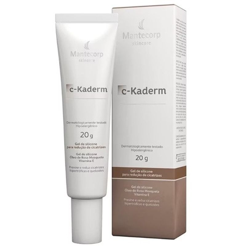 C-Kaderm é um gel de silicone cicatrizante composto por óleo de rosa mosqueta e vitamina E, com indicação para prevenção e melhora de cicatrizes (hipertróficas e queloides). Este produto auxilia a regeneração e redução de cicatrizes, diminui o relevo e endurecimento da cicatriz, melhora a flexibilidade e tonalidade da cicatriz, além de promover o alívio da coceira.