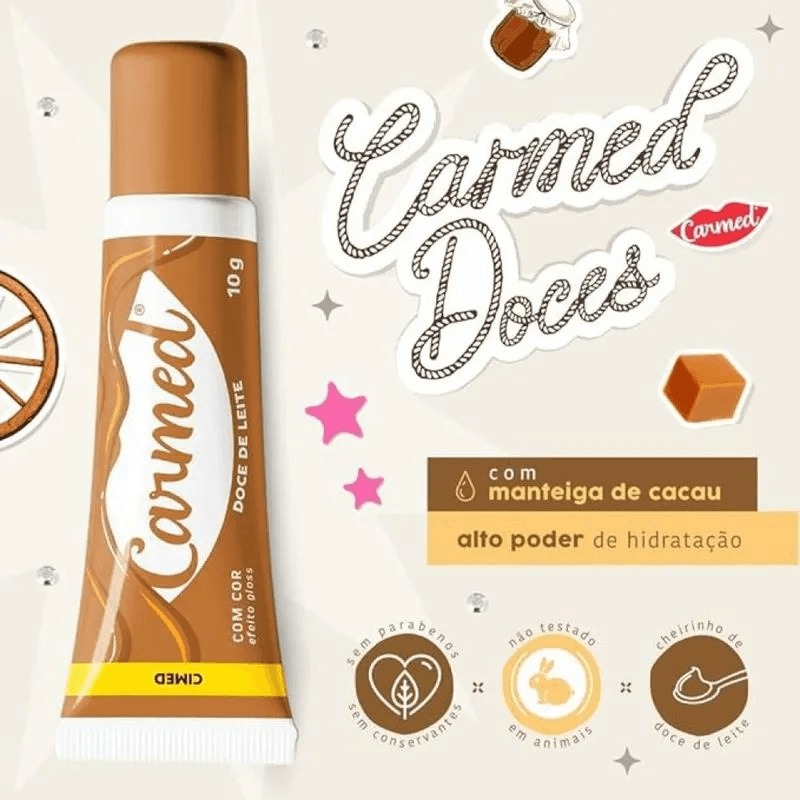 O hidratante labial Carmed é refrescante, incolor e tem sabor especial de cereja - sua fórmula exclusiva contém manteiga de cacau, lanolina, vaselina e cera de abelha, protege e hidrata, ajuda a evitar o ressecamento e tratar os lábios ressecados e rachados, pode ser usado com batom.