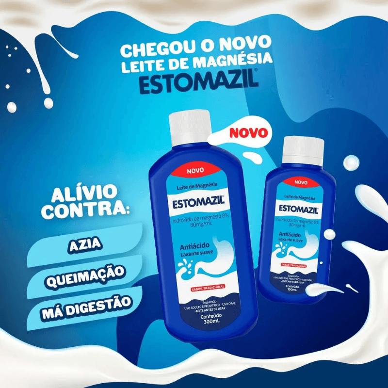 O Leite de Magnésia Estomazil Tradicional 100ml é um antiácido e laxante suave, ideal para aliviar sintomas de azia, queimação, má digestão e prisão de ventre ocasional. Sua fórmula à base de hidróxido de magnésio age neutralizando a acidez estomacal e promovendo o funcionamento saudável do intestino. É uma solução eficaz e tradicional para o equilíbrio digestivo.