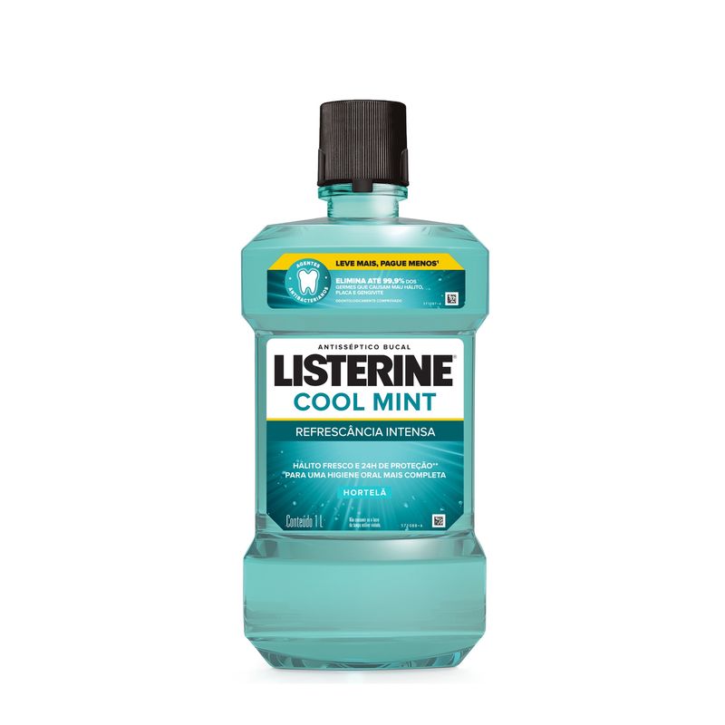 Listerine Antisséptico Bucal Cool Mint é um produto destinado a ajudar a manter a higiene bucal saudável. Ele é formulado com ingredientes ativos que ajudam a matar germes e bactérias na boca, prevenindo o mau hálito, a placa bacteriana e as doenças gengivais. Além disso, ele possui um sabor refrescante de hortelã-pimenta que deixa a boca com frescor por mais tempo. Para usar, basta colocar 20 ml de Listerine na boca, bochechar por 30 segundos e cuspir. Use diariamente como parte de sua rotina de cuidados bucais para uma boca saudável e fresca. Consulte um dentista ou um médico antes de usar este produto, especialmente se você tiver alguma condição bucal ou gengival preexistente.