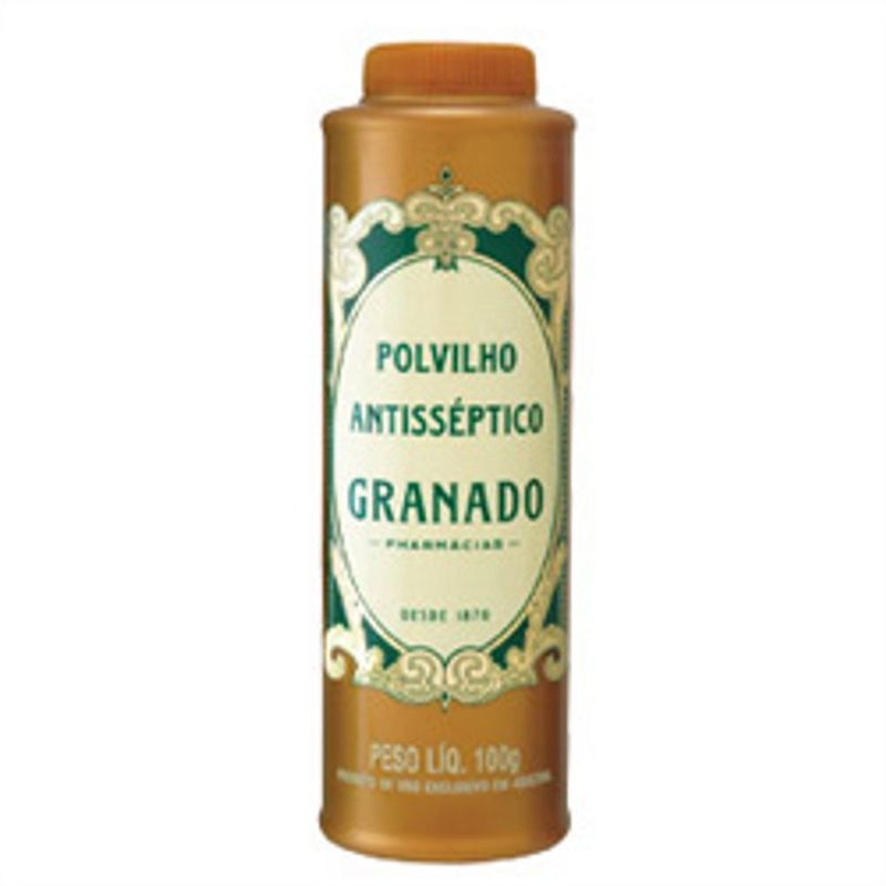 O Polvilho Antisséptico Granado previne e combate assaduras, brotoejas, pruridos, frieiras e odores da transpiração dos pés e axilas. Sua fórmula combina as ações antisséptica, antibacteriana, fungicida, secativa e desodorante. Modo de uso Polvilhar as partes afetadas 3 a 5 vezes ao dia.