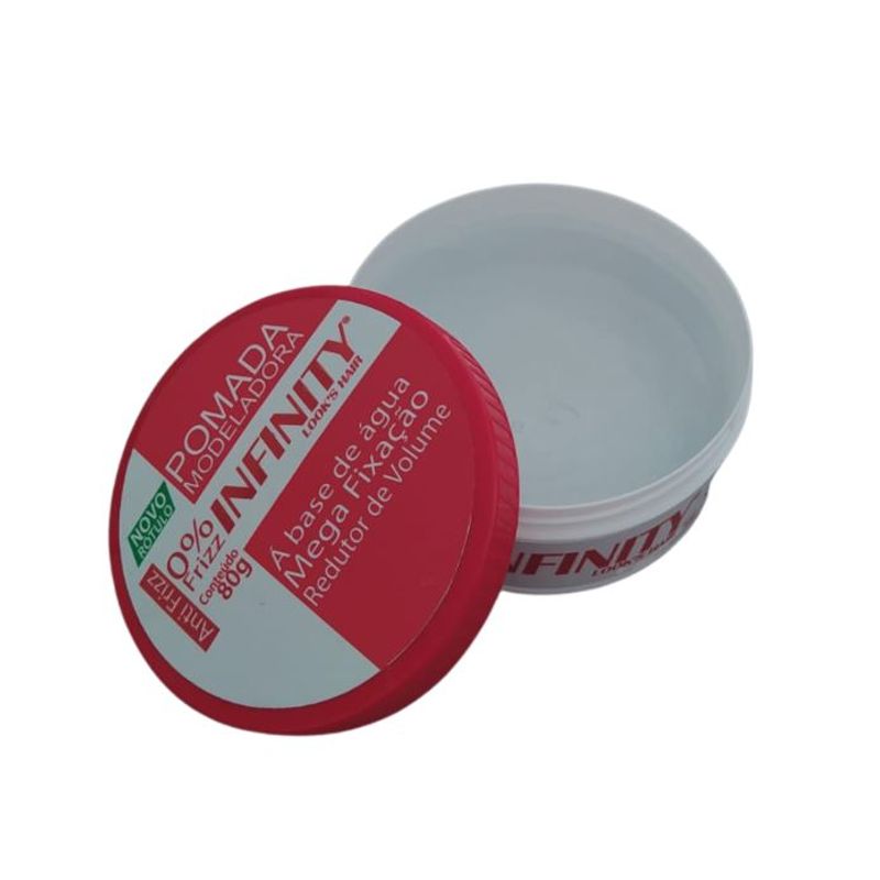 A Pomada Finlizadora Infinity Vermelha 80g, controla os fios rebeldes, modelando e hidratando os cabelos. Apresenta excelentes resultados após escova e/ou prancha, dando brilho.