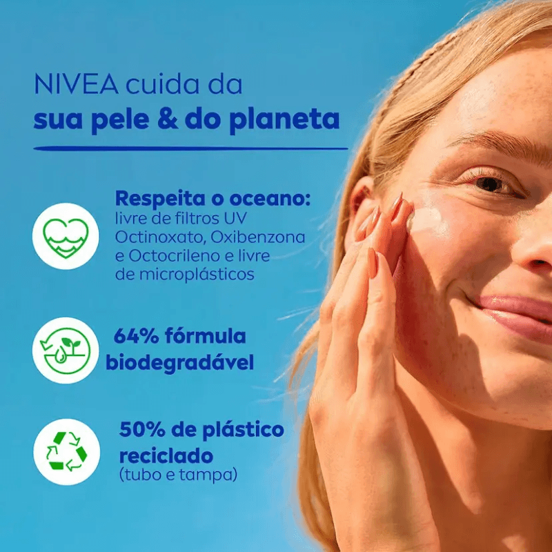 Desenvolvido para a pele delicada do rosto, o protetor solar facial Nivean Sub UV Face oferece proteção por dentro e por fora, contra os raios UVA e UVB. Ele ainda ajuda a proteger contra os efeitos causados pela luz visível, protegendo tambén contra o envelhecimento precoce.