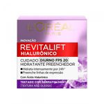 É um creme facial com ação antirrugas. Sua fórmula hidrata intensamente a pele por 24h e preenche as linhas de expressão. Com textura leve, o novo Revitalift Hialurônico é indicado para todos os tipos de pele além de também proteger a pele do fotoenvelhecimento pois possui FPS 20. Para combater os sinais do envelhecimento, descubra a gama completa Revitalift Hialurônico. Enriquecido com Ácido Hialurônico puro, componente naturalmente presente na pele e responsável por reter a hidratação, o novo Revitalift Hialurônico hidrata intensamente por 24h, preenche linhas de expressão e revitaliza a pele. Sua textura leve pode ser aplicada em todos os tipos de pele, garantindo uma melhora global em seu aspecto. Indicação Indicado para todos os tipos de pele para tratar as primeiras linhas de expressão. Testado com dermatologistas. Benefícios • Em um dia: Pele mais tonificada e com sensação de intensa hidratação. • Em 2 semanas: Redução das linhas de expressão (-10%*) e pele visivelmente mais preenchida. • Em 8 semanas: Pele revitalizada, visivelmente mais jovem. Redução das rugas entre as sobrancelhas (-14%) e do lábio superior (-30%). Modo de Usar Aplicar diariamente fazendo movimentos circulares ascendentes no rosto e pescoço previamente limpos. Não aplique perto da área dos olhos. Em caso de contato com os olhos, enxágue imediatamente. Manter fora do alcance de crianças. Se observar qualquer reação adversa, suspender o uso. Se persistir, consulte seu médico. Este produto não é um protetor solar.