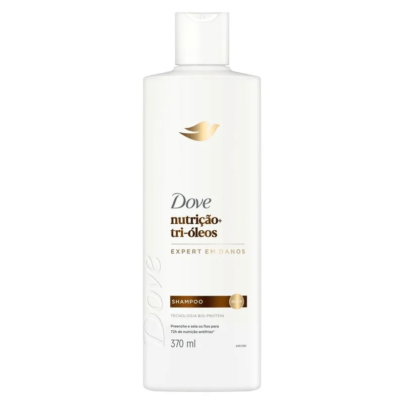 O Shampoo Dove Nutrição + Tri-Óleos 370ml foi desenvolvido especialmente para cabelos secos e danificados. Sua fórmula exclusiva combina a Tecnologia Bio-Protein com uma combinação de tri-óleos nutritivos—coco, argan e girassol—que penetram profundamente na fibra capilar, restaurando a vitalidade dos fios. Com uso contínuo, promove até 72 horas de nutrição antifrizz, deixando os cabelos mais macios, alinhados e com brilho saudável. ? Benefícios Principais Nutrição Profunda: Combinação de tri-óleos que penetram na fibra capilar. Controle de Frizz: Efeito antifrizz por até 72 horas. Brilho Saudável: Deixa os fios com brilho natural. Tecnologia Bio-Protein: Fortalece e protege os cabelos. Uso Diário: Ideal para a rotina diária de cuidados capilares. ?? Como Usar Aplique o shampoo nos cabelos molhados. Massageie suavemente até formar espuma. Enxágue bem. Se necessário, repita a aplicação. Para melhores resultados, utilize o Condicionador Dove Nutrição + Tri-Óleos.