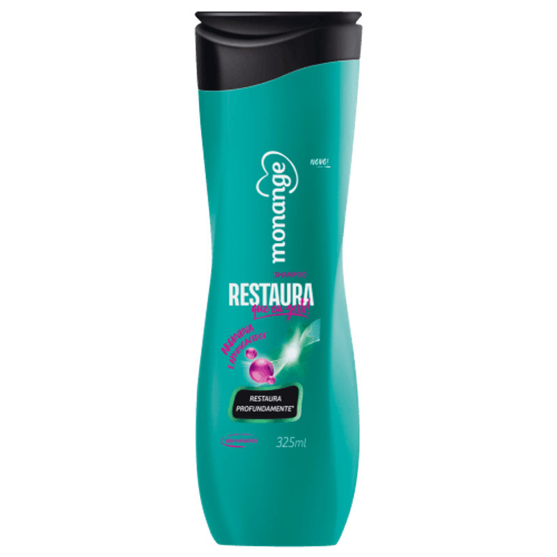 Shampoo Monange Restaura que Eu Gosto - 325ml: Este produto contém 325ml de shampoo formulado para cabelos danificados.