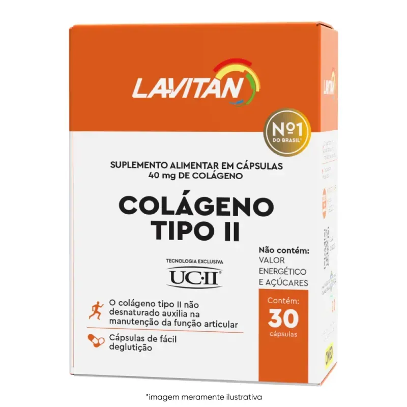 Suplemento alimentar de colágeno Tipo II não desnaturado em cápsulas. O colágeno tipo II não desnaturado auxilia na manutenção da função articular.
