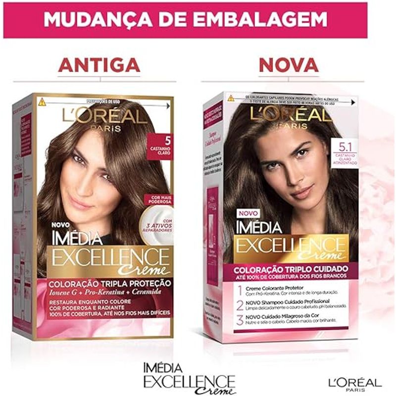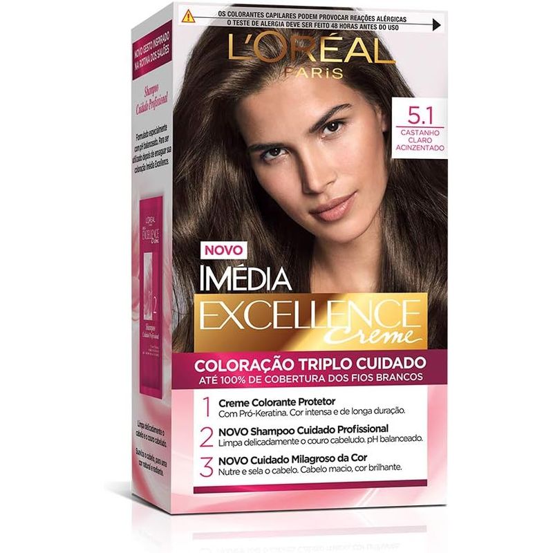 Imédia Excellence é a coloração permanente da L'Oréal que oferece um triplo cuidado: Cuida da cor, com o Creme Colorante Protetor; Cuida do couro cabeludo, com o shampoo pós-coloração Cuidado Profissional; Cuida dos cabelos, com o condicionador intensivo Cuidado Milagroso da Cor. É a coloração ideal se você deseja cobrir 100% dos cabelos brancos ou simplesmente transformar o seu visual.