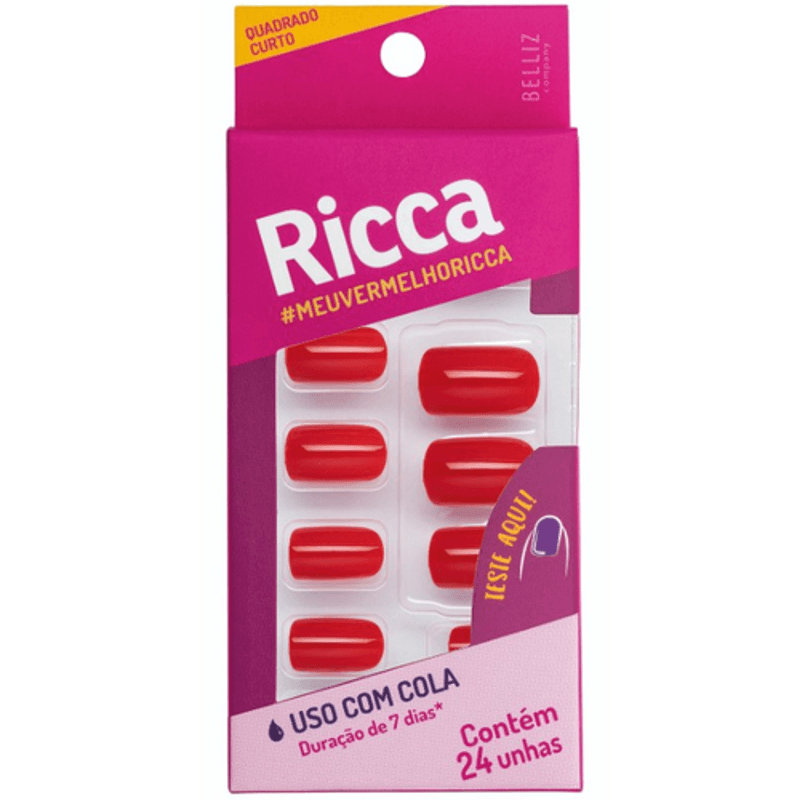 Unhas Postiças Francesinha Vermelho Modelo Quadrado Curto Ricca 24 unidades